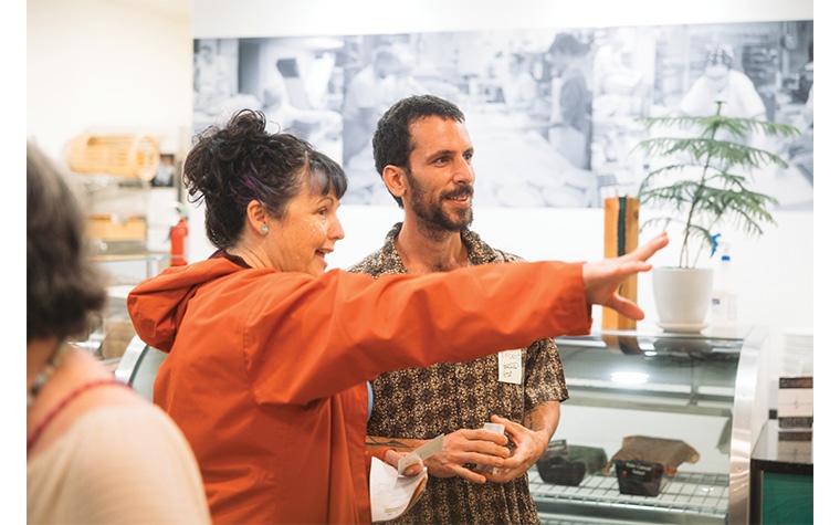 Art sales began as soon as the night started and continued all evening. Both professional and emerging artists participated in Art Walk; the event was also a chance for some emerging artists to have their work shown for the very first time. Art Walk also benefits the local business partners. Michelle Rudell, owner of Nelson Olive Oil, shared: “It was a busy night right from the start and we had so many folks in the store who said they had never been in before. As any business owner knows, getting new people in the door can be challenging. They were impressed by the art as well as the products that we sell. We had lots of first-time sales. I was very happy with my Art Walk experience as a business owner.”