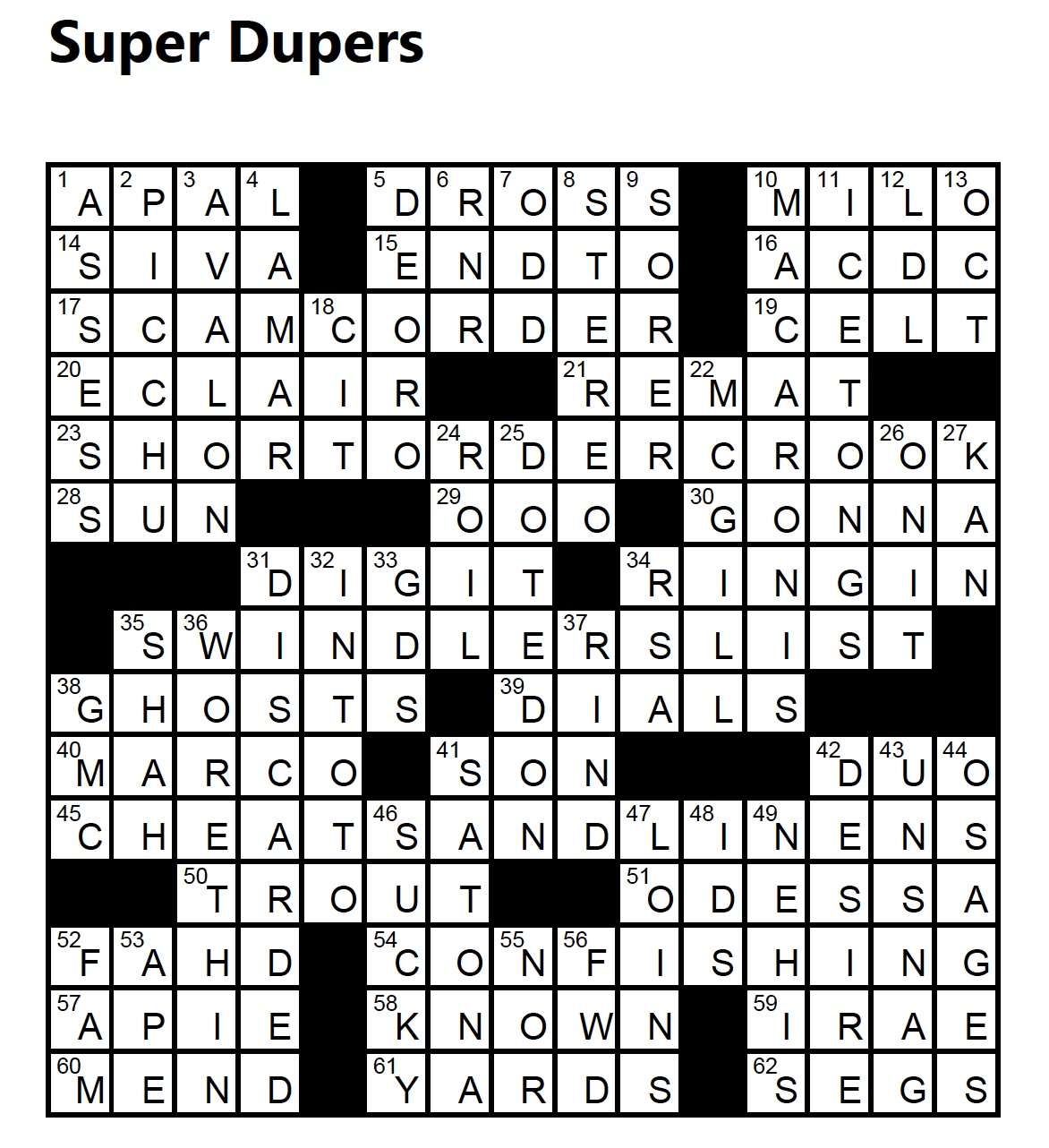 “Super Dupers” | Crossword Solution